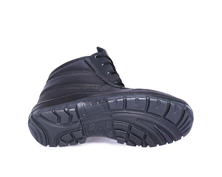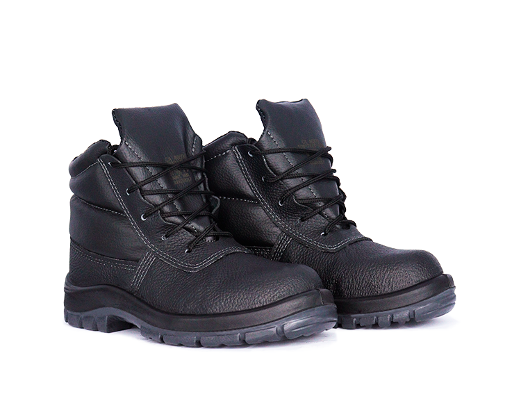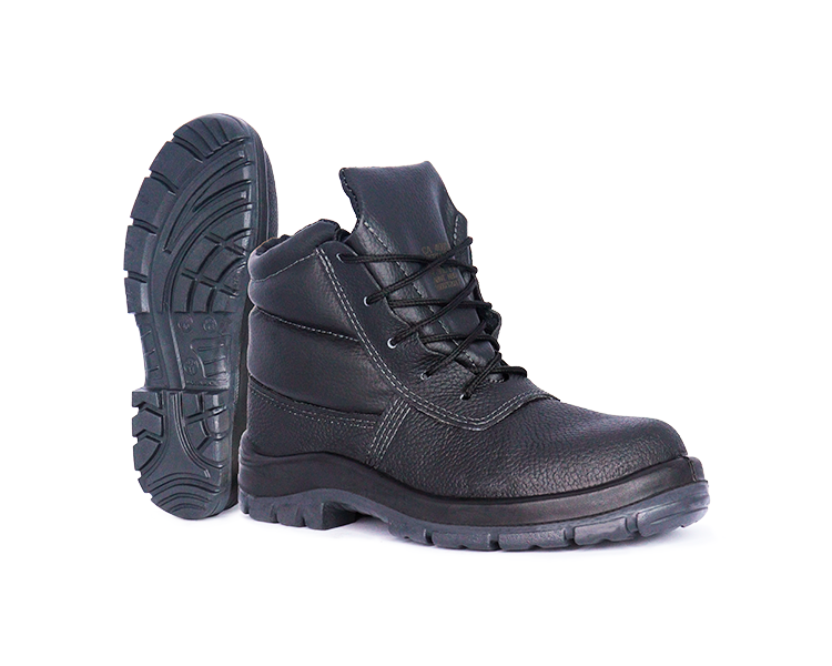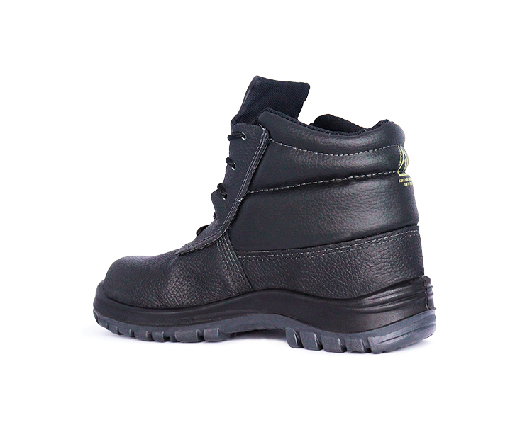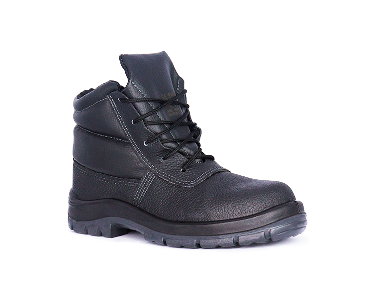 Confeccionado em couro, 1,8/2,0 mm (18/20 linhas) de espessura, colarinho e lingueta fole em material sintético, acolchoado, e costuras simples, duplas e quádruplas. Possui protetor metatarso, fechamento em amarrar e acompanha cadarço em poliéster com ponta resinada.
