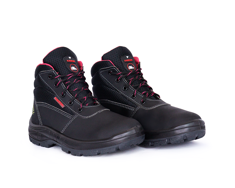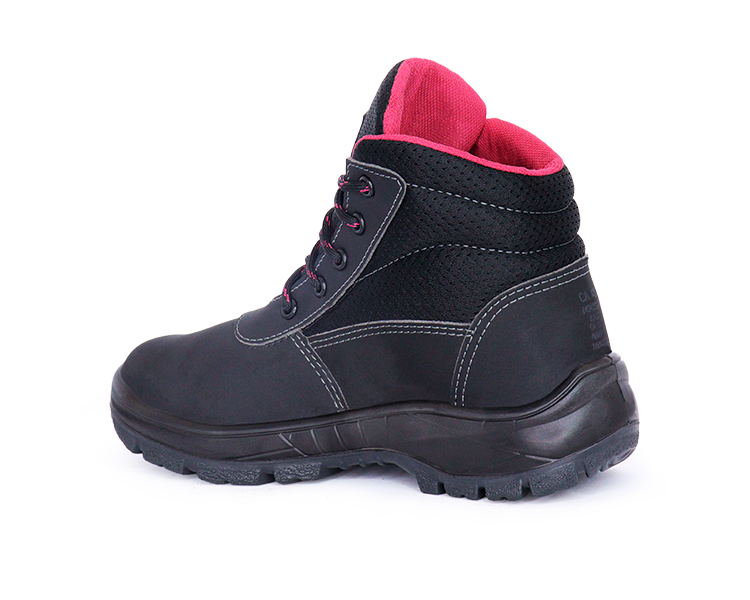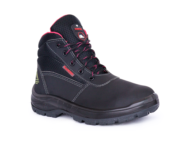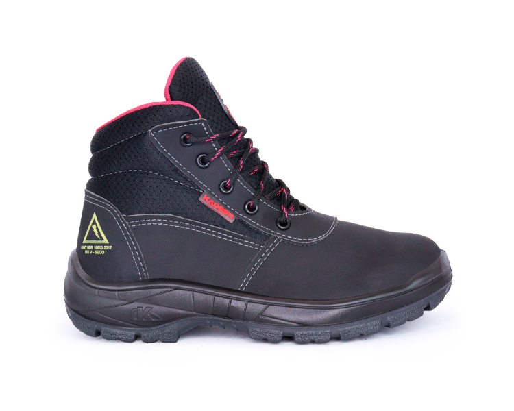 Bota Microfibra Kadesh Adventure, preta e rosa, com solado em poliuretano (PU). Calçado com o conforto e a proteção necessária para enfrentar o dia a dia em diversos ambientes de trabalho. Atende as normas da ABNT NBR ISO.