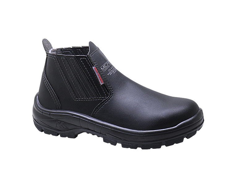 Confeccionada com uma blenda polimérica (misturas mecânicas de diferentes plásticos), sem componentes metálicos, resistente ao impacto de 200J e 15KN, com borda de acabamento em polipropileno para evitar lesões/cortes nos dedos dos pés e/ou nas unhas.