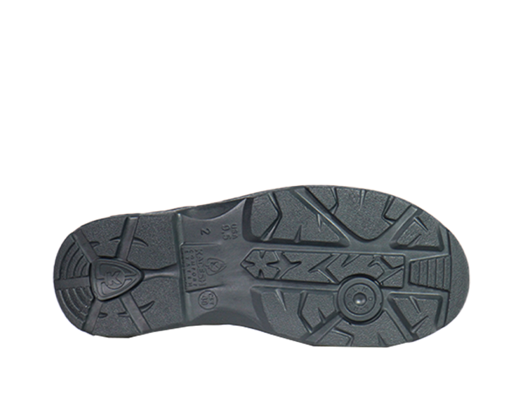 Solado bidensidade PU/PU injetado diretamente ao cabedal proporcionando maior conforto, leveza e resistência a abrasão. Possui as seguintes características: (sola compacta dureza 50 a 65 ShoreA, densidade moldada 1,10 g/cm3, entressola com dureza 39 a 50 ShoreA densidade 0,37g/cm3). Canais de escoamentos mais espaçados, ranhuras de aderência para melhor mobilidade ao caminhar. O calçado antiestático ou dissipativo, cuja simbologia é A (ESD), evita, remove ou reduz a formação de eletricidade estática corporal.